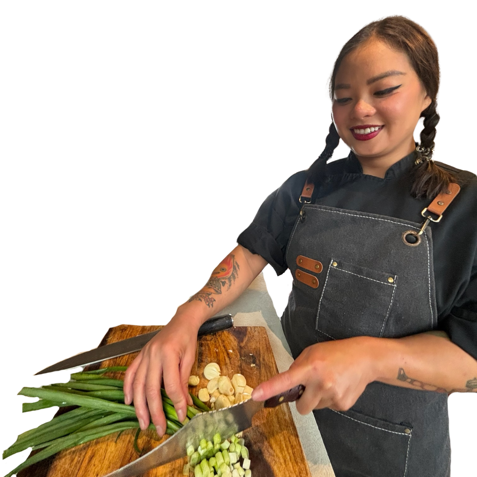 GiGi brings flavor from life on the road — cooking on boats, at retreats, and even at Burning Man — always rooted in seasonal, locally sourced ingredients. From pho-fueled nights in New York to weddings on the West Coast, her style is built on flavor, freedom, and soul. She blends Vietnamese comfort with Southern warmth, but her true specialty is creating food that fits the moment — and the people it’s for.